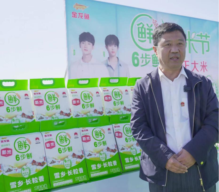 電商直播是今年新米節(jié)上的重頭戲,稻田邊將直播間搬到了現(xiàn)場。張清泉主任面向直播鏡頭,向觀眾們分享方正縣如何搶抓機遇、整合農(nóng)產(chǎn)品資源帶動農(nóng)民增收致富的故事,與觀眾們分享2024年第一把長粒香新米。談到方正,從地理環(huán)境、產(chǎn)業(yè)特色、產(chǎn)地優(yōu)勢等方面為觀眾們詳細(xì)介紹了雪鄉(xiāng)長粒香方正大米如何通過金龍魚采用的稻谷“6步鮮米精控技術(shù)”實現(xiàn)從大米到鮮米的跨越。