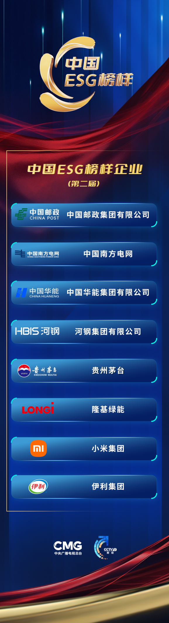 當天,中央廣播電視總臺財經(jīng)節(jié)目中心聯(lián)合國務院國資委、全國工商聯(lián)、中國社科院國有經(jīng)濟智庫、中國企業(yè)改革與發(fā)展研究會等權(quán)威機構(gòu)舉辦了《第二屆“ESG榜樣”盛典》,這8家企業(yè)均成功登榜“ESG榜樣企業(yè)”,成為ESG領(lǐng)域的新領(lǐng)軍者。