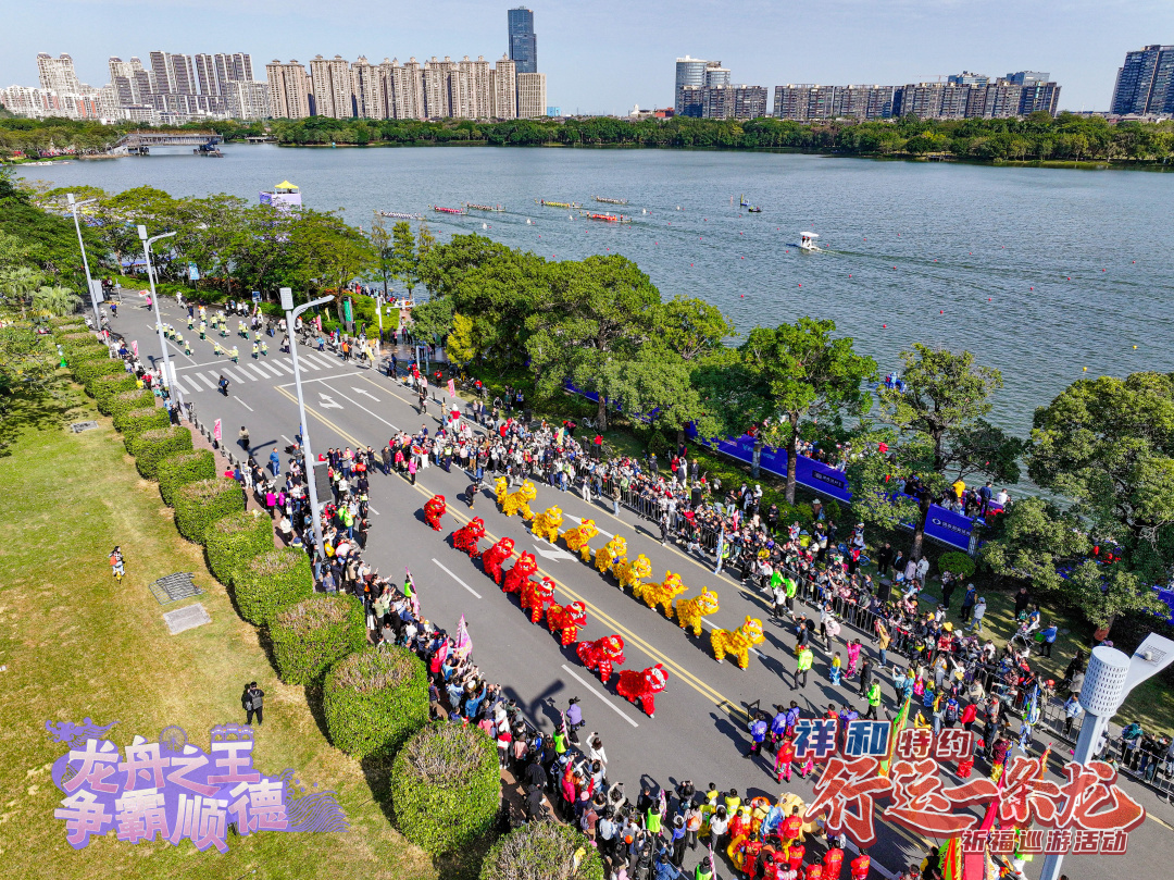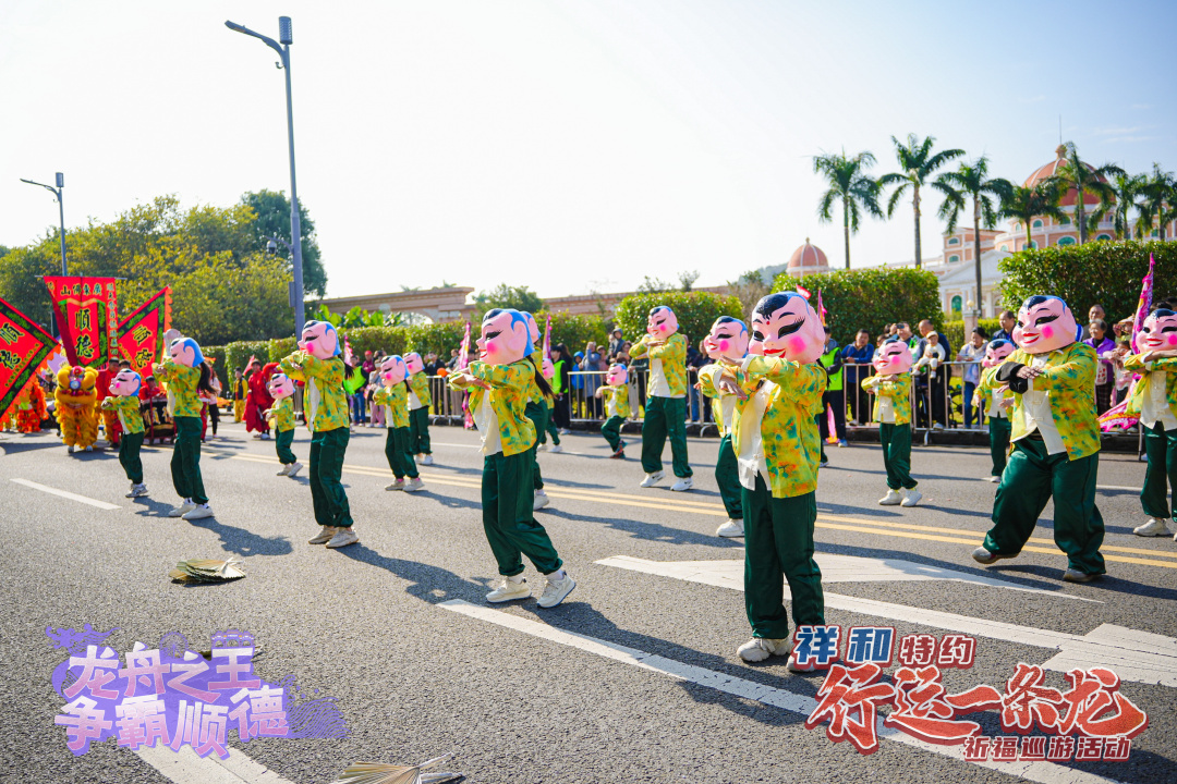解鎖龍文化,體驗新玩法;打造新民俗,巡游好歡樂?!靶羞\一條龍”祈福巡游活動是順德全新打造的龍舟文化新民俗,現(xiàn)已成功舉辦兩屆。巡游以“拜龍母”“龍眼點睛”等民俗儀式為核心,凝練“行龍運,接龍?!钡脑⒁猓屖忻裼慰徒嚯x感受民俗活動的獨特魅力。