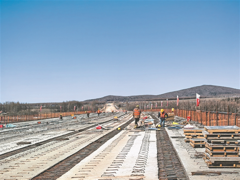 日前,在G1111鶴哈高速苔青至伊春段梅花河大橋的施工現(xiàn)場,數(shù)十名工人正熱火朝天地進(jìn)行橋梁的鋼構(gòu)件加工和安裝工作。鶴哈高速苔伊項目3月16日正式復(fù)工復(fù)產(chǎn),為完善龍江高速公路網(wǎng)絡(luò)按下“加速鍵”。