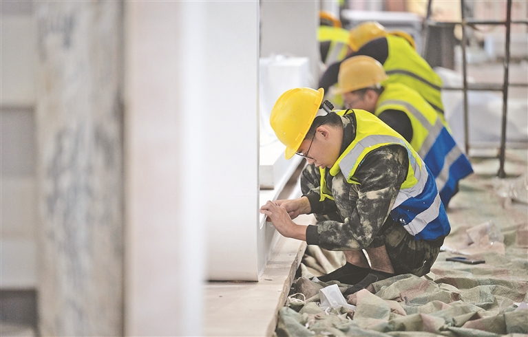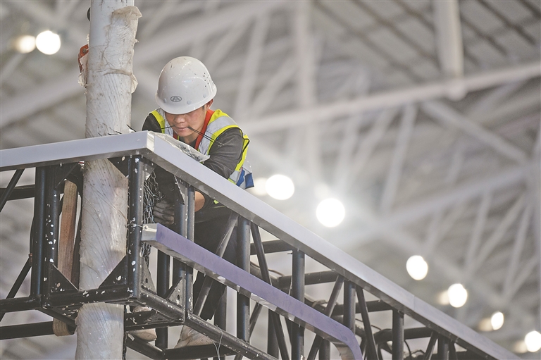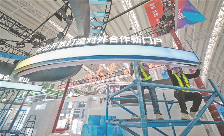 5月14日,距離哈洽會開幕還有三天時間,記者來到第34屆哈洽會展館施工現場,各區(qū)域展臺已搭建成型,施工工人們正在有條不紊地裝飾展區(qū)細節(jié)部分。