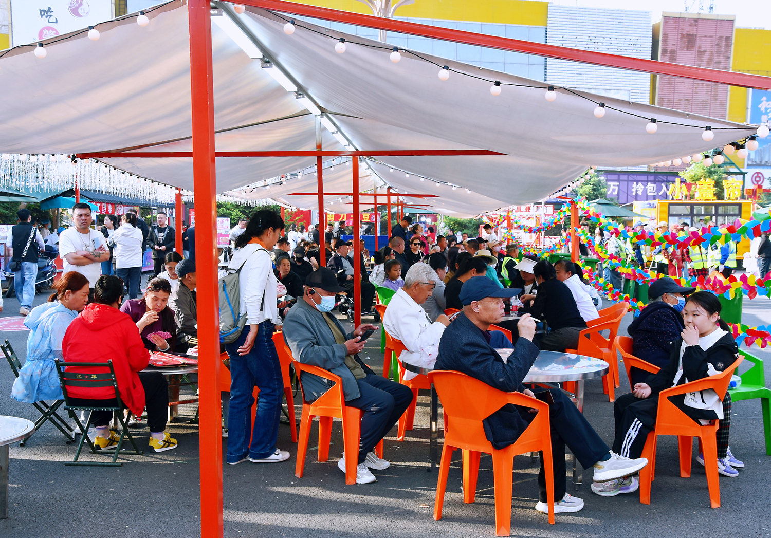 活動現(xiàn)場,肇東小餅作為“當(dāng)家招牌”,搭配創(chuàng)新口味和工藝,吸引游客駐足?!皼]想到這里的夜市這么大,太有氛圍了,過癮!”一位來自哈爾濱的游客說。演藝互動現(xiàn)場,架子鼓表演、動感單車表演火力全開,震撼人心的演出和動感十足的節(jié)拍,點(diǎn)燃了現(xiàn)場氣氛。在動靜相宜的娛樂休閑區(qū),“筆落驚鴻·墨染乾坤”肇東傳統(tǒng)書畫品鑒會、“小餅香里品書香”觀書展,讓文化在煙火氣中生生不息,當(dāng)美食與文學(xué)邂逅,字里行間品風(fēng)味,唇齒間留遐想,世間滋味便不可辜負(fù)。