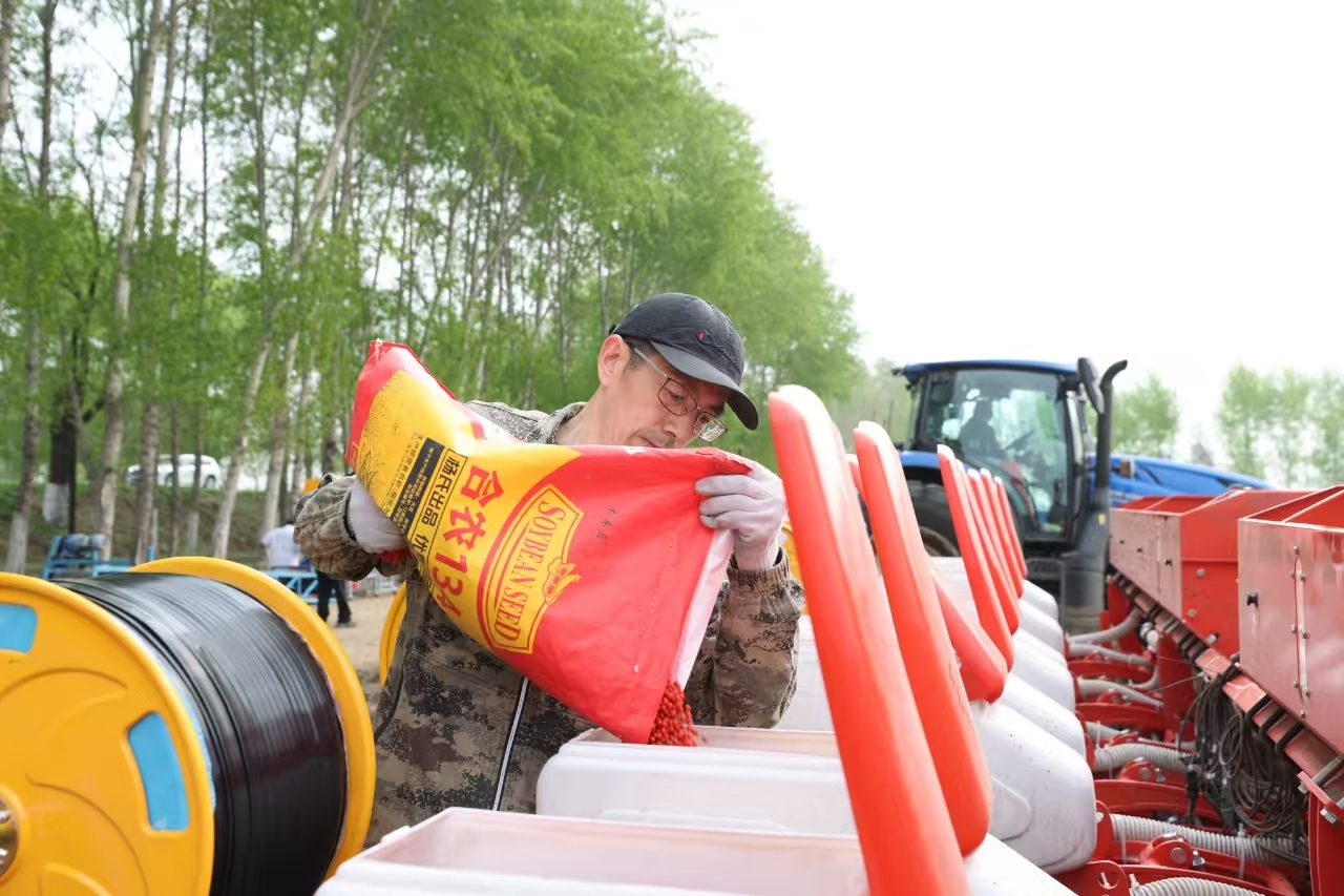 在北林區(qū)大豆大面積單產(chǎn)提升示范區(qū),工作人員熟練地操作著設(shè)備,金黃的大豆種子源源不斷地進(jìn)入拌種機(jī),經(jīng)過與精心調(diào)配的種衣劑充分混合,一顆顆種子都披上了一層均勻的“防護(hù)衣”,為大豆高產(chǎn)穩(wěn)產(chǎn)和黑土地保護(hù)注入新動能。