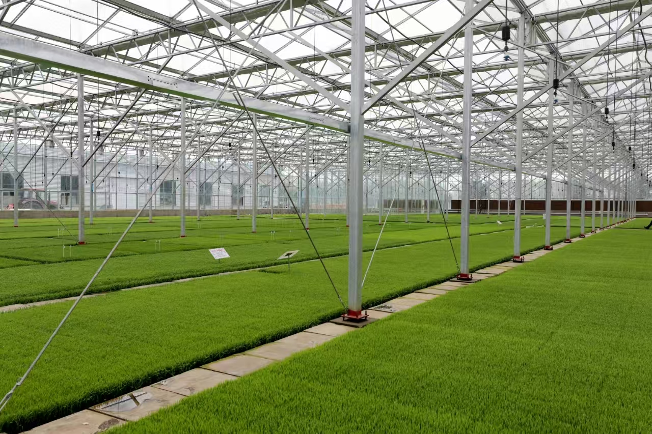 盛昌種子繁育有限公司高級農(nóng)藝師盧國臣介紹,秧苗長得好,離不開智能化育苗溫室這個“智能管家”。棚室里的電子顯示屏可以實時監(jiān)測到溫度、濕度、光照、土壤酸堿度和微量元素等數(shù)據(jù)信息,風(fēng)控系統(tǒng)、采光系統(tǒng)、噴淋系統(tǒng)隨時進(jìn)行智能調(diào)控,5G技術(shù)的應(yīng)用使大棚的管理更加高效、精準(zhǔn),確保秧苗始終處于最適宜的生長環(huán)境中?!耙酝鶄鹘y(tǒng)育秧,主要靠人工經(jīng)驗判斷,效率低不說,還容易受到天氣等因素影響,導(dǎo)致秧苗質(zhì)量參差不齊?,F(xiàn)在有了這套智能化育秧系統(tǒng),不僅節(jié)省了大量人力,而且育出的秧苗出芽率高、生長整齊,為水稻高產(chǎn)打下了堅實基礎(chǔ)?!北R國臣說。
