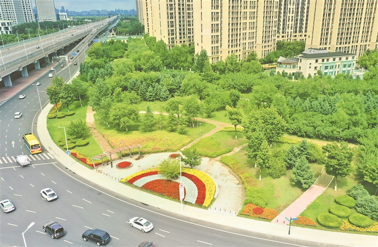 3日,哈爾濱市道里區(qū)陽明灘大道附近,行人從“口袋公園”旁走過。今年,當?shù)匦陆硕鄠€“口袋公園”,占地面積數(shù)萬平方米。公園里,樹木生長茂盛,鮮花爭奇斗艷,小道從園中穿過,道旁設(shè)有座椅、健身器材等。許多附近居民到這里休閑、賞景。