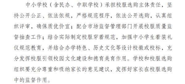 近日,重慶市教委與市場監(jiān)管局聯(lián)合發(fā)布的《關(guān)于進一步加強中小學(xué)生校服管理工作的指導(dǎo)意見(征求意見稿)》,以“明確主體責(zé)任、強化家長監(jiān)督、鼓勵自主選購”為核心,為校服管理提供了一份兼具針對性與操作性的“重慶方案”。