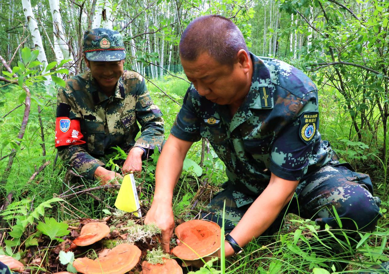 阿木爾林業(yè)局依西林場(chǎng)場(chǎng)級(jí)林長、副林長查看野生靈芝豐收情況(王力 攝)