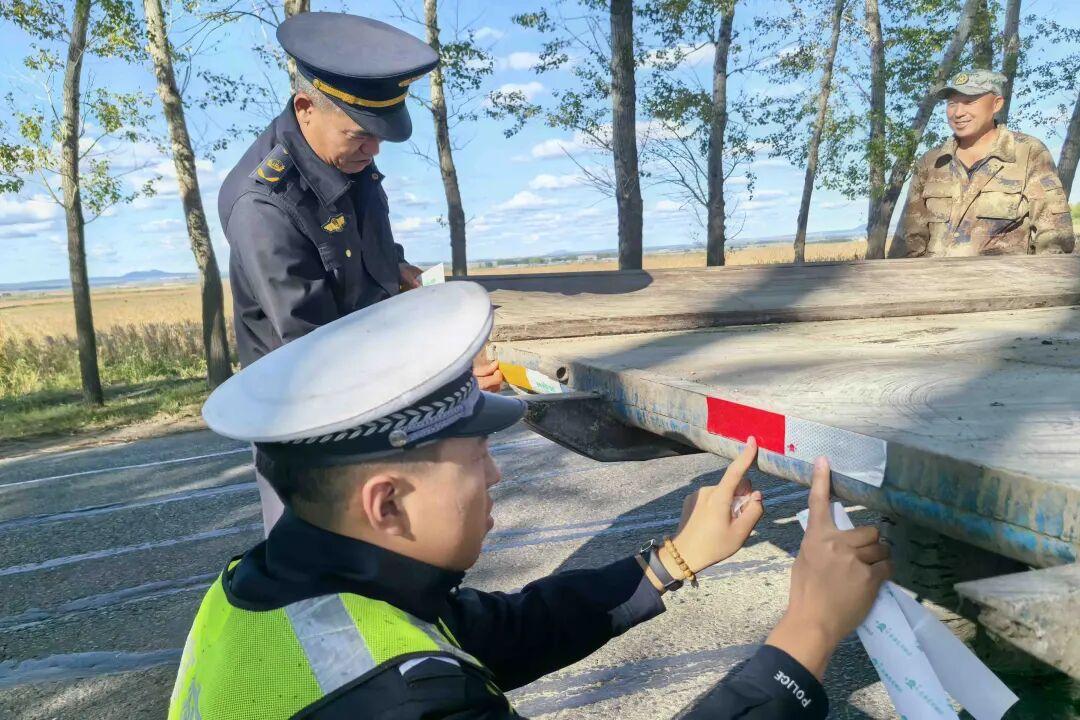 行動中,“警農(nóng)”聯(lián)合執(zhí)法小組結(jié)合轄區(qū)秋收農(nóng)機出行規(guī)律,在農(nóng)村主干道、田間出入口等路段設(shè)置臨時檢查點,按照“逢車必查、違法必究”的原則,對過往拖拉機、農(nóng)用車進(jìn)行逐一檢查,嚴(yán)厲打擊無牌無證、酒駕醉駕、違法載人等交通違法行為,形成嚴(yán)查、嚴(yán)管、嚴(yán)處的高壓態(tài)勢,從源頭上預(yù)防和減少交通事故。同時,針對秋收期間農(nóng)用車、農(nóng)機具夜間作業(yè)頻繁,反光標(biāo)識缺失易引發(fā)事故的問題,持續(xù)深化“亮尾”行動,對上路行駛的農(nóng)用車、大型農(nóng)機具等車身無反光標(biāo)識、反光標(biāo)識不清晰不完整的車輛現(xiàn)場免費粘貼反光貼,確保車身側(cè)面、尾部關(guān)鍵部位反光標(biāo)識清晰可見,提升夜間行駛辨識度;并向群眾面對面講解農(nóng)用車違法載人、無牌無證、駕駛報廢車輛上路行駛等交通違法行為的危害性,切實提升安全出行意識和自我保護(hù)意識,引導(dǎo)群眾自覺遵守交通法規(guī),養(yǎng)成安全作業(yè)習(xí)慣。