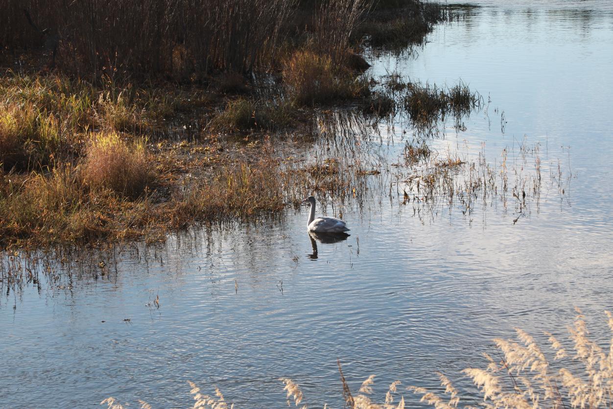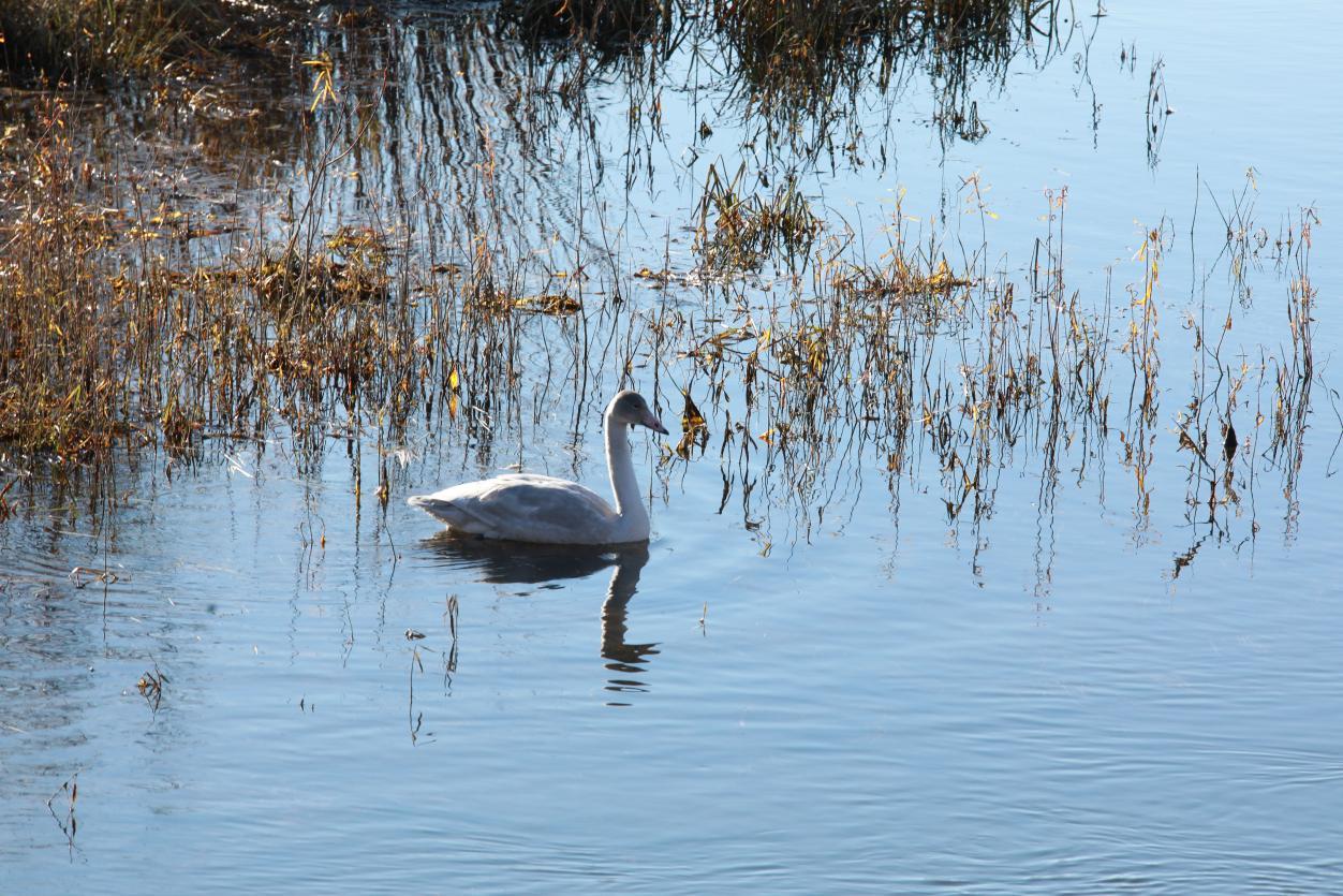 黑龍江經(jīng)濟網(wǎng)訊(王力)時值深秋,正是候鳥南遷的關鍵時節(jié)。近日,在阿木爾林業(yè)局國家濕地公園的河畔,驚喜發(fā)現(xiàn)一只國家二級保護動物亞成體大天鵝在此駐足嬉戲,潔白的身影點綴在秋日濕地間,它時而將細長脖頸探入水中,專注覓食;時而收攏羽翼,在碧波間悠閑游動,為這片濕地增添了一抹靈動生機。