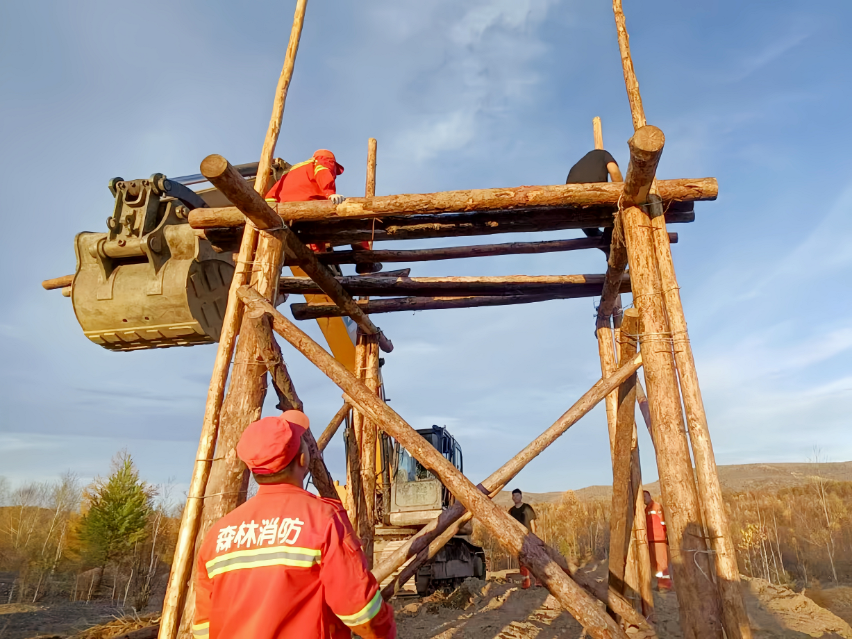 新林林業(yè)局工作人員在搭建臨時鳥類觀測平臺(耿子健 攝)