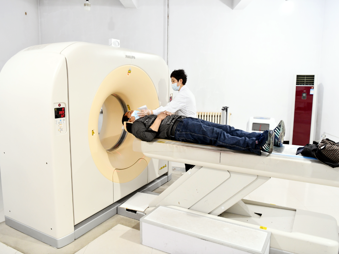 林業(yè)局職工在進(jìn)行肺部CT檢查(張銘煊 攝)
