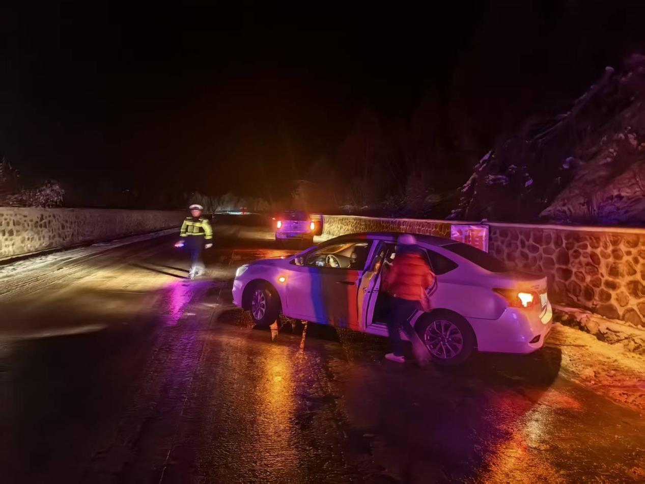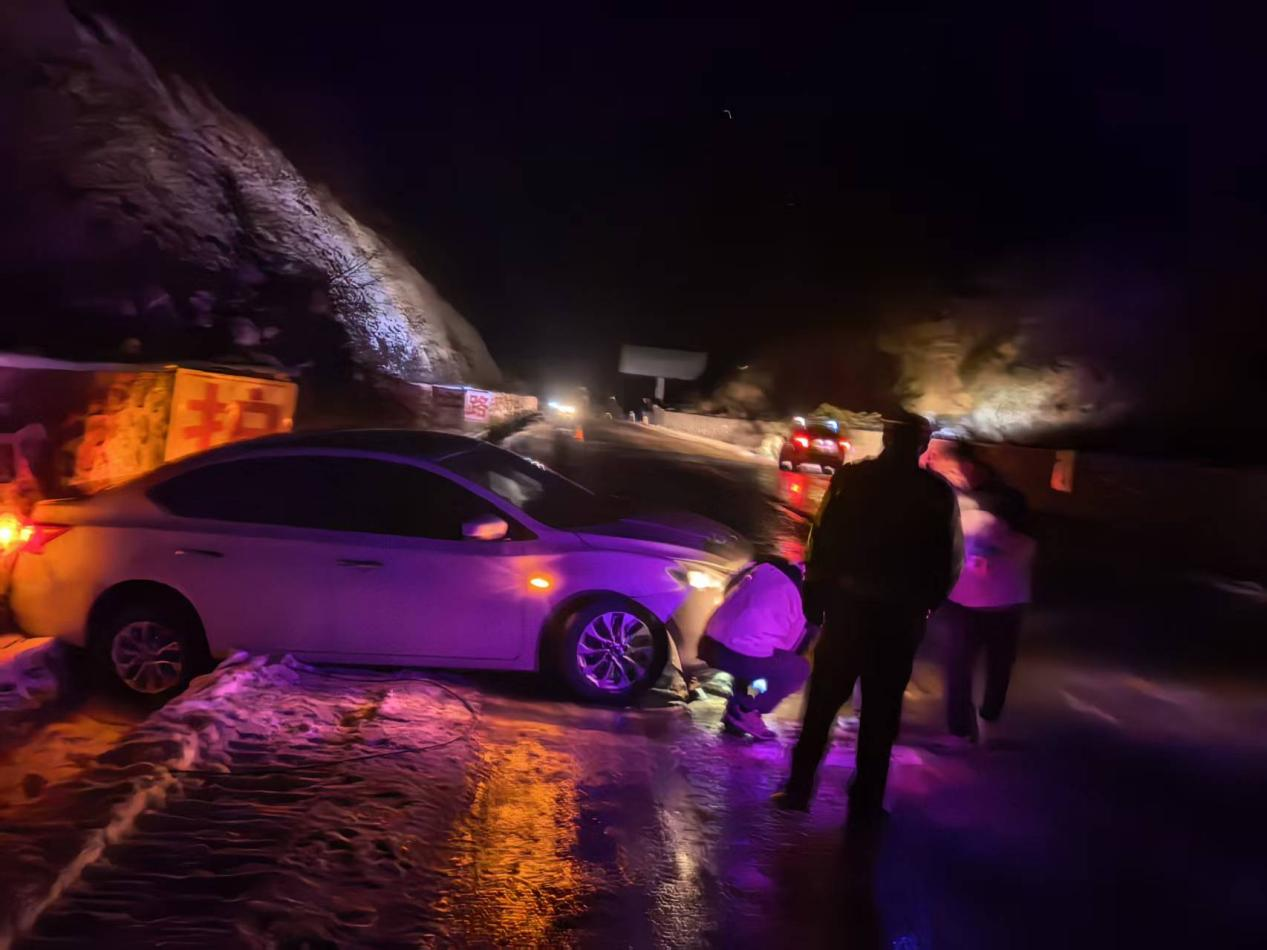 了解情況后,民警立即找來(lái)了皮卡車(chē)用拖車(chē)?yán)K反復(fù)嘗試拖拽,經(jīng)過(guò)一個(gè)小時(shí)的拖救,成功將受困車(chē)輛成功拖拽到主路。由于天色漸晚,民警建議游客到前方縣內(nèi)進(jìn)行休息調(diào)整。隨后,民警仔細(xì)檢查了車(chē)輛的輪胎、剎車(chē)等關(guān)鍵部位,確認(rèn)車(chē)輛無(wú)故障后,還耐心向游客講解了 G331 國(guó)道夜間行車(chē)的注意事項(xiàng),包括提前查看天氣、控制車(chē)速、保持車(chē)距以及遇到突發(fā)情況如何正確求助等。