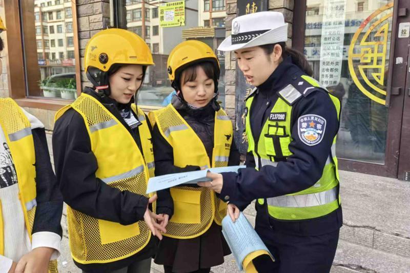 活動中,民警先后走進轄區(qū)外賣企業(yè)及物流運輸企業(yè),結(jié)合轄區(qū)交通管理工作實際,緊緊圍繞當(dāng)前廣大交通參與者的出行特點,通過發(fā)放宣傳資料、粘貼海報及以案釋法等方式,向企業(yè)負(fù)責(zé)人及駕駛?cè)嗽敿?xì)講解雨雪天氣出行交通安全知識及酒駕醉駕、無牌無證、超員超載、不佩戴安全頭盔、不系安全帶等違法行為的嚴(yán)重危害和后果,同時現(xiàn)場警示交通參與者:“摒棄僥幸心理,從細(xì)節(jié)養(yǎng)成良好駕駛習(xí)慣,緊繃交通安全弦,時刻守住出行安全防線?!?/span>