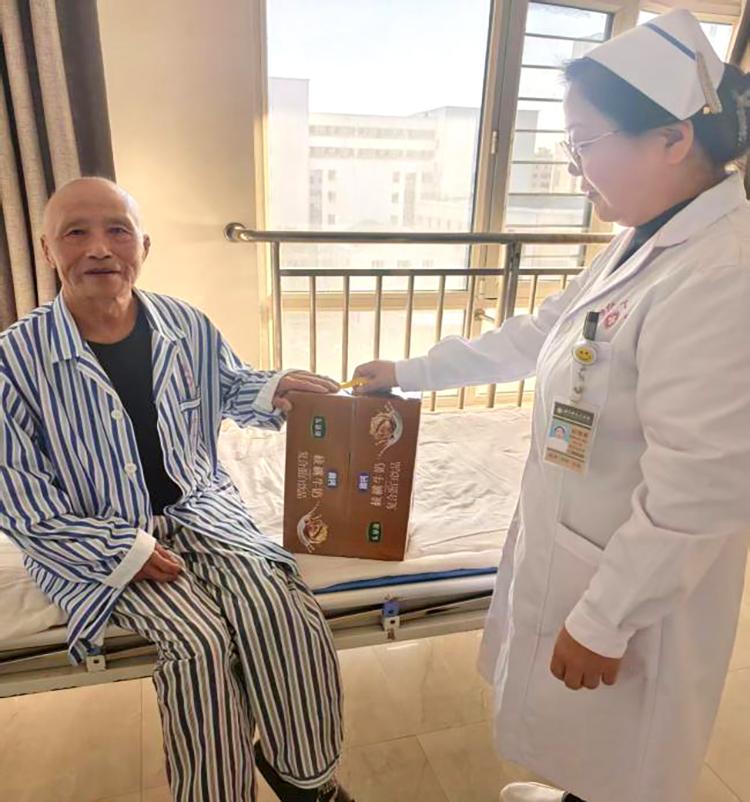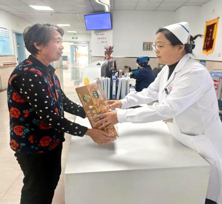 禮品雖小,情意濃重。開展活動期間,醫(yī)護人員們帶著精心準備的小禮品,走進每一位60歲以上老年患者的病房。這些小禮品雖然價格并不昂貴,但卻飽含著對患者的深深祝福。柔軟舒適的保暖襪,為患者在漸冷的霜降時節(jié)增添一份溫暖;營養(yǎng)豐富的滋補品,助力患者增強身體抵抗力;寓意吉祥的平安符,寄托著對患者早日康復的美好期許。當醫(yī)護人員將一份份小禮品送到患者手中時,患者們的臉上都洋溢著驚喜與感動的笑容,紛紛對科室的貼心關(guān)懷表示感謝。患者劉阿姨激動地說:“在這個特殊的節(jié)日里,收到你們送的禮物,心里特別溫暖”。