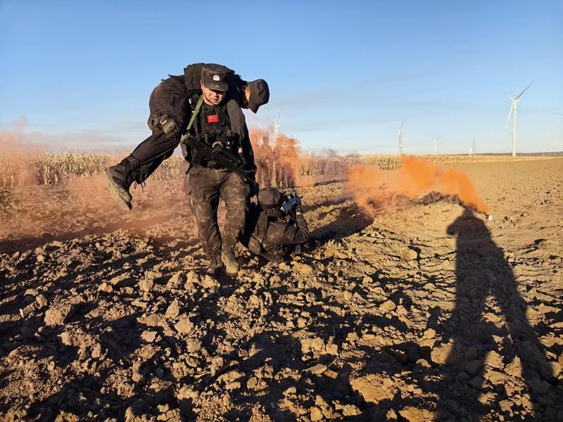 嚴(yán)苛訓(xùn)練礪精兵,汗水鑄就戰(zhàn)斗力。在戰(zhàn)術(shù)訓(xùn)練現(xiàn)場(chǎng),隨著指揮員一聲令下,隊(duì)員們迅速結(jié)成戰(zhàn)斗小組,交替掩護(hù)、快速推進(jìn),動(dòng)作連貫流暢。在徒手防控科目中,隊(duì)員們反復(fù)練習(xí)擒敵拳、控制術(shù)等技能,每一個(gè)動(dòng)作都追求標(biāo)準(zhǔn)規(guī)范。此外,針對(duì)冬季邊境地區(qū)夜長晝短,反恐與巡特警大隊(duì)還專門開展夜間訓(xùn)練,隊(duì)員們?cè)谝归g環(huán)境中搭建臨時(shí)帳篷并展開夜間搜索,進(jìn)一步提升了夜間的應(yīng)急處突能力。