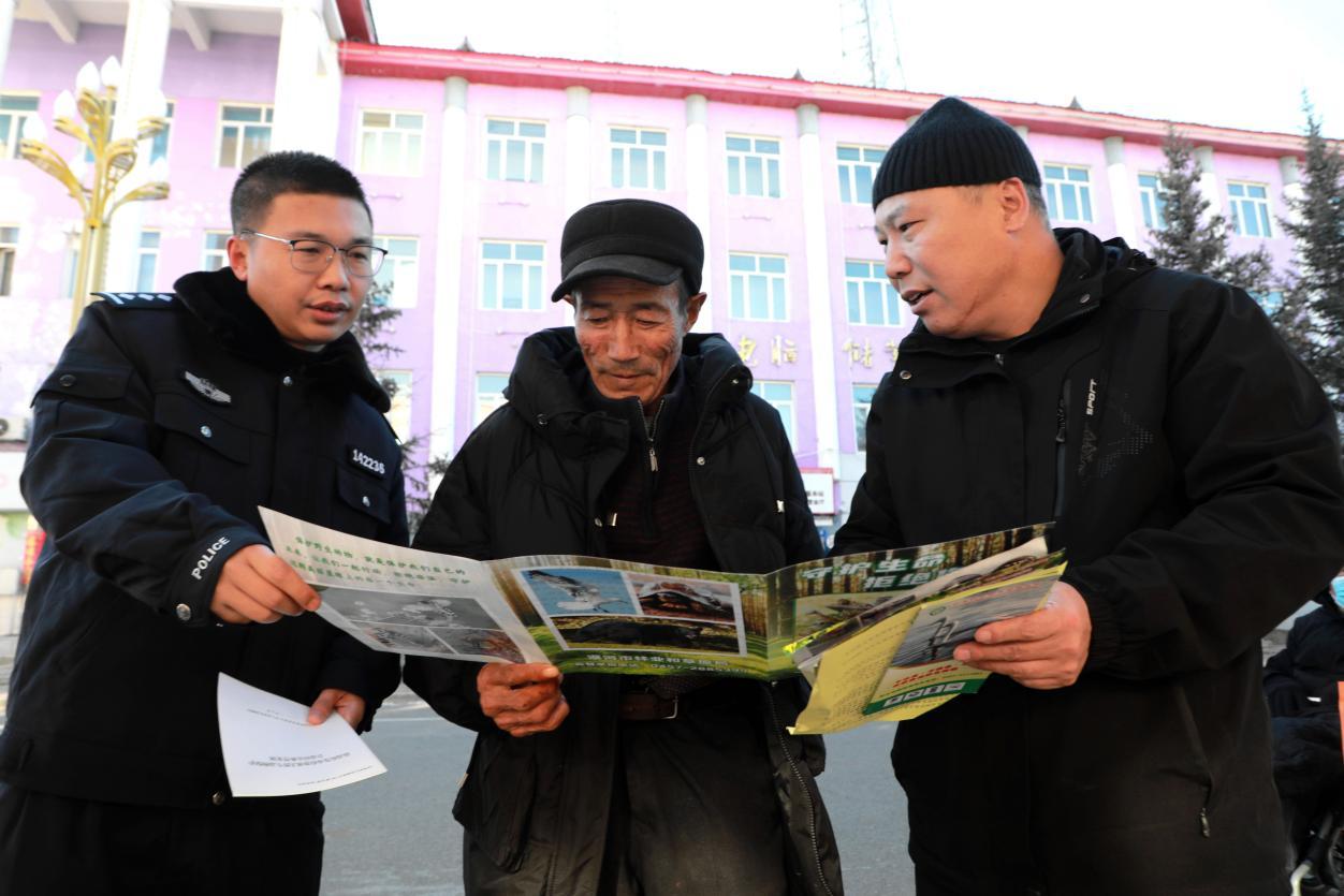 在林業(yè)局中華路繁華路段,聯(lián)合宣傳小組設(shè)立宣傳臺,鮮艷的宣傳條幅在人群中格外醒目,工作人員向過往居民發(fā)放宣傳單,細致解讀《中華人民共和國野生動物保護法》《黑龍江野生動物保護條例》等法律法規(guī)核心條款。為增強宣傳實效,工作人員結(jié)合反面典型案例,明確闡明非法獵捕、販賣鳥類行為的違法屬性及法律后果,引導(dǎo)居民自覺抵制并主動制止破壞鳥類等野生動物資源的行為。針對一線職工群體,宣傳小組還通過鳥類圖譜展示,系統(tǒng)普及鳥類知識與保護意義,推動形成“全社會參與保護、人人有責(zé)”的良好氛圍。