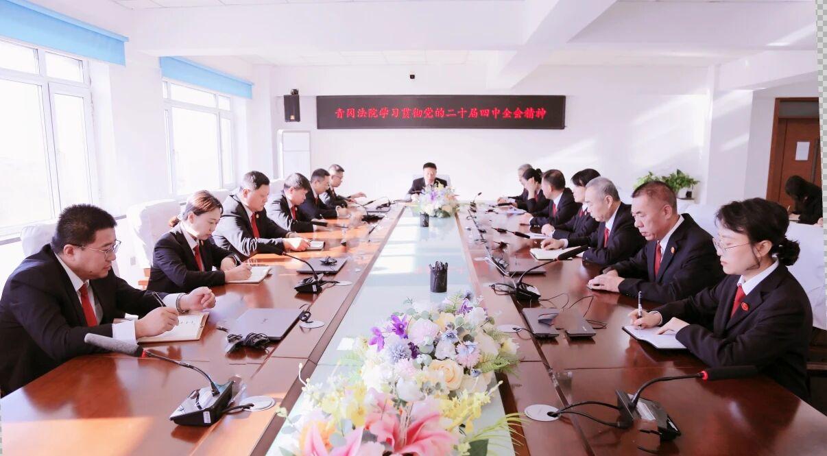 會(huì)議強(qiáng)調(diào),要錨定政治引領(lǐng),在鑄牢忠誠之魂上抓落實(shí)。要深化理論武裝、強(qiáng)化政治忠誠、壓實(shí)政治責(zé)任。黨組成員要帶頭把學(xué)習(xí)貫徹全會(huì)精神作為當(dāng)前和今后一個(gè)時(shí)期的重大政治任務(wù),建立黨組領(lǐng)學(xué)、支部研學(xué)、干警自學(xué)的三級(jí)學(xué)習(xí)機(jī)制。通過專題研討、輔導(dǎo)講座、案例教學(xué)等形式,深入學(xué)習(xí)習(xí)近平總書記重要講話精神和全會(huì)規(guī)劃建議原文,準(zhǔn)確領(lǐng)會(huì)“六個(gè)堅(jiān)持”重要原則,深刻領(lǐng)悟“兩個(gè)確立”的決定性意義,增強(qiáng)“四個(gè)意識(shí)”、堅(jiān)定“四個(gè)自信”、做到“兩個(gè)維護(hù)”。要聚焦中心大局,在精準(zhǔn)服務(wù)保障上抓落實(shí)。要護(hù)航高質(zhì)量發(fā)展、保障科技自立自強(qiáng)、守護(hù)生態(tài)環(huán)境安全、筑牢國家安全屏障。完整、準(zhǔn)確、全面貫徹新發(fā)展理念,依法審理涉市場(chǎng)經(jīng)濟(jì)案件,著力破除阻礙統(tǒng)一大市場(chǎng)卡點(diǎn)堵點(diǎn),維護(hù)良性競(jìng)爭(zhēng)秩序、助力市場(chǎng)資源高效配置。妥善審理涉創(chuàng)新創(chuàng)造案件,為科技創(chuàng)新和產(chǎn)業(yè)融合提供法治保障。深入踐行“兩山”理念,依法審理環(huán)境資源案件,以最嚴(yán)格制度和最嚴(yán)密的法治守護(hù)青岡綠水青山。貫徹總體國家安全觀,依法嚴(yán)懲各類刑事犯罪,常態(tài)化開展掃黑除惡,維護(hù)社會(huì)大局持續(xù)穩(wěn)定。