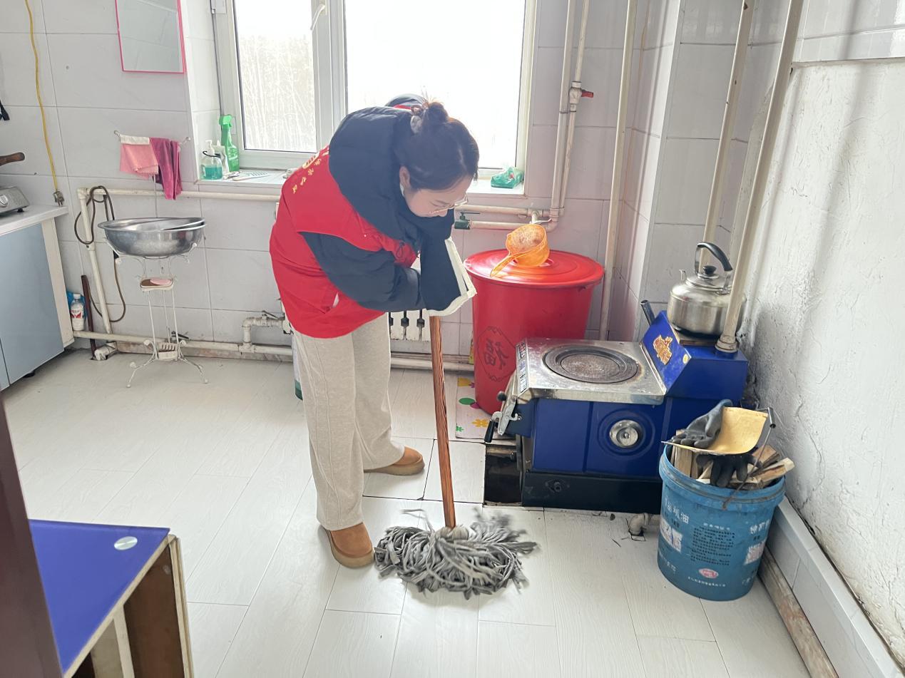 在清掃現(xiàn)場,服務(wù)隊(duì)隊(duì)長現(xiàn)場分工,志愿者們手持鐵鍬、雪推等工具,重點(diǎn)清理主干道與作業(yè)通道。大家配合默契,鏟雪、推雪、掃雪有序進(jìn)行。盡管天氣寒冷,但志愿者們干勁十足。經(jīng)過連續(xù)奮戰(zhàn),各管護(hù)站的主要道路、院落和通道積雪被徹底清除,出行安全得到保障。